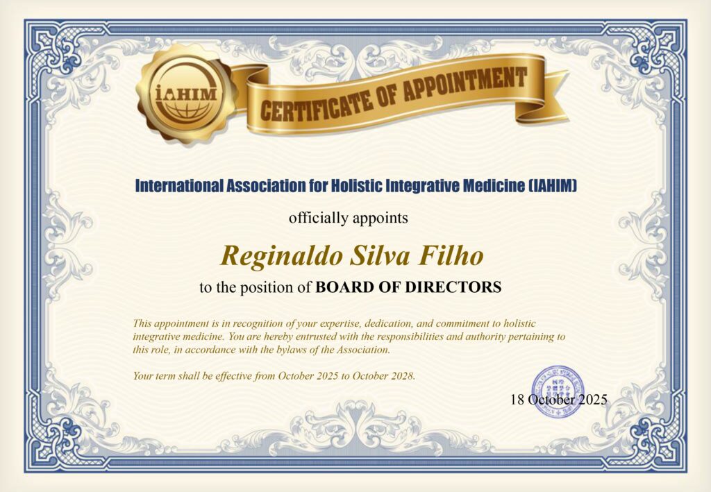 Em 18 de outubro de 2025, o nosso diretor geral, Dr. Reginaldo Filho, foi eleito membro da diretoria da IAHIM – International Association for Holistic Integrative Medicine (Associação Internacional de Medicina Holística Integrativa). A eleição ocorreu durante a assembleia geral de fundação da instituição, realizada na cidade histórica de Xi’an,