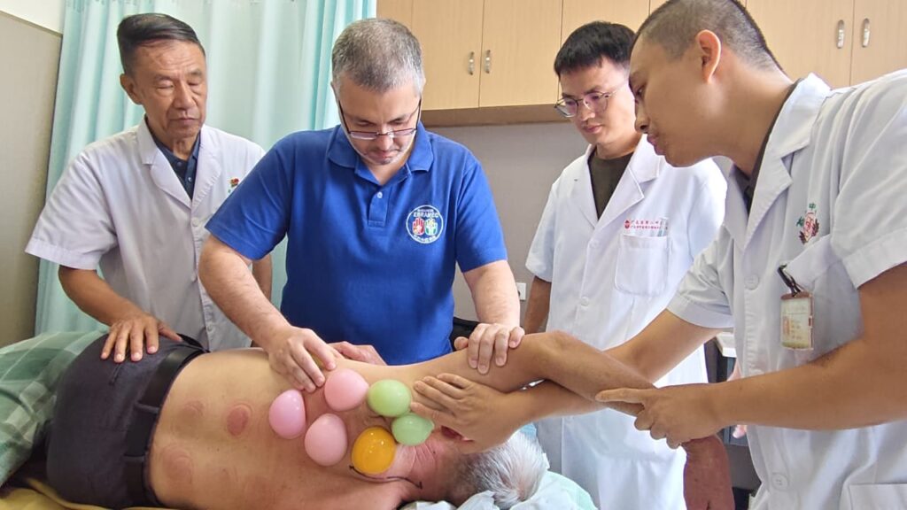 Durante a visita, Dr. Reginaldo Filho teve a oportunidade de conhecer de perto o trabalho do Professor Zhong Shiyuan, criador do Método de Ventosaterapia Fácil – Ventosaterapia de Silicone, técnica apresentado por seu discipulo Dr. Xie Dong Ming, no Brasil, quando lecionou dois cursos como Professor Convidado na Faculdade EBRAMEC. Diferentemente das ventosas tradicionais de vidro, o método utiliza ventosas de silicone flexíveis, permitindo uma aplicação mais prática e agéis.