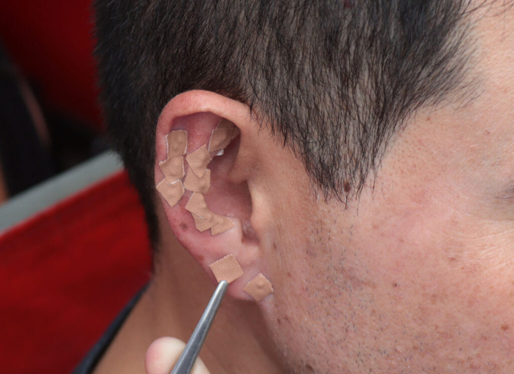 Acupuntura Auricular é uma das abordagens terapêuticas dentro do ramo clínico da Acupuntura e Moxabustão, parte importante da Medicina Chinesa, baseada no conceito de que as orelhas são representações do corpo todo, tendo capacidade de corresponder a todos os órgãos e funções do corpo, através da conexão permitida pelo fluxo de Qi ao logo dos Canais e Colaterais, tradicionais da acupuntura. Assim como, pela ótica ocidental, ao se estimular os pontos localizados na orelha, o cérebro recebe impulsos que desencadeiam fenômenos físicos nas áreas afetadas.